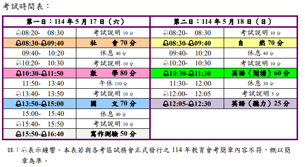 【114會考】114年國中教育會考5月16日下午3時開放看考場 (附考試時程表)